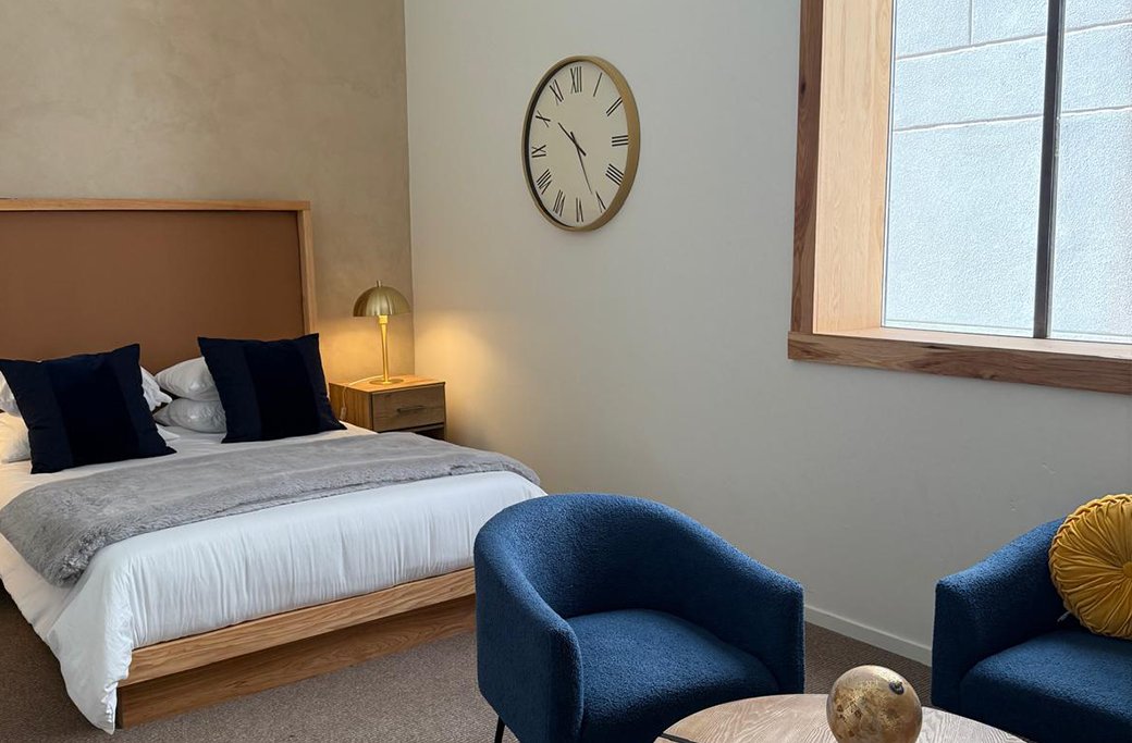 These top floor units do require you climb one flight of stairs as our historic building's elevator does not reach this floor. Indulge in the spacious luxury and unique charm of our queen suites, where comfort meets sophistication. Enhance your productivity in our luxurious boutique hotel, where every room is thoughtfully equipped with a desk and complimentary high-speed Wi-Fi. Whether you prefer working in the privacy of your suite or in the vibrant atmosphere of our lobby, bar, or common areas, you'll find the perfect spot to get work done seamlessly.