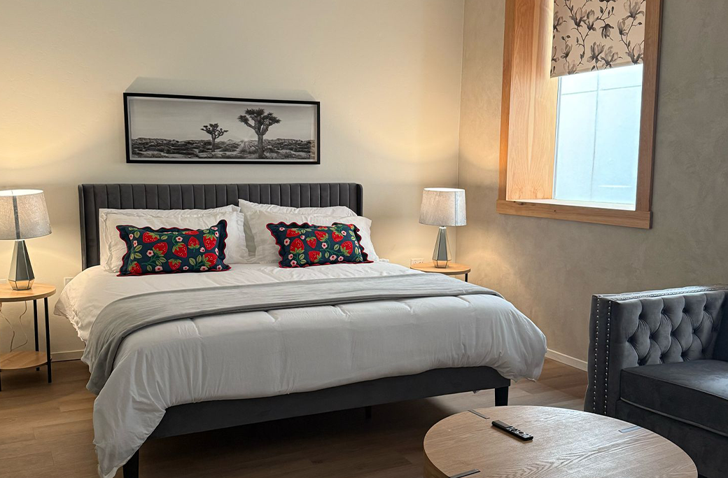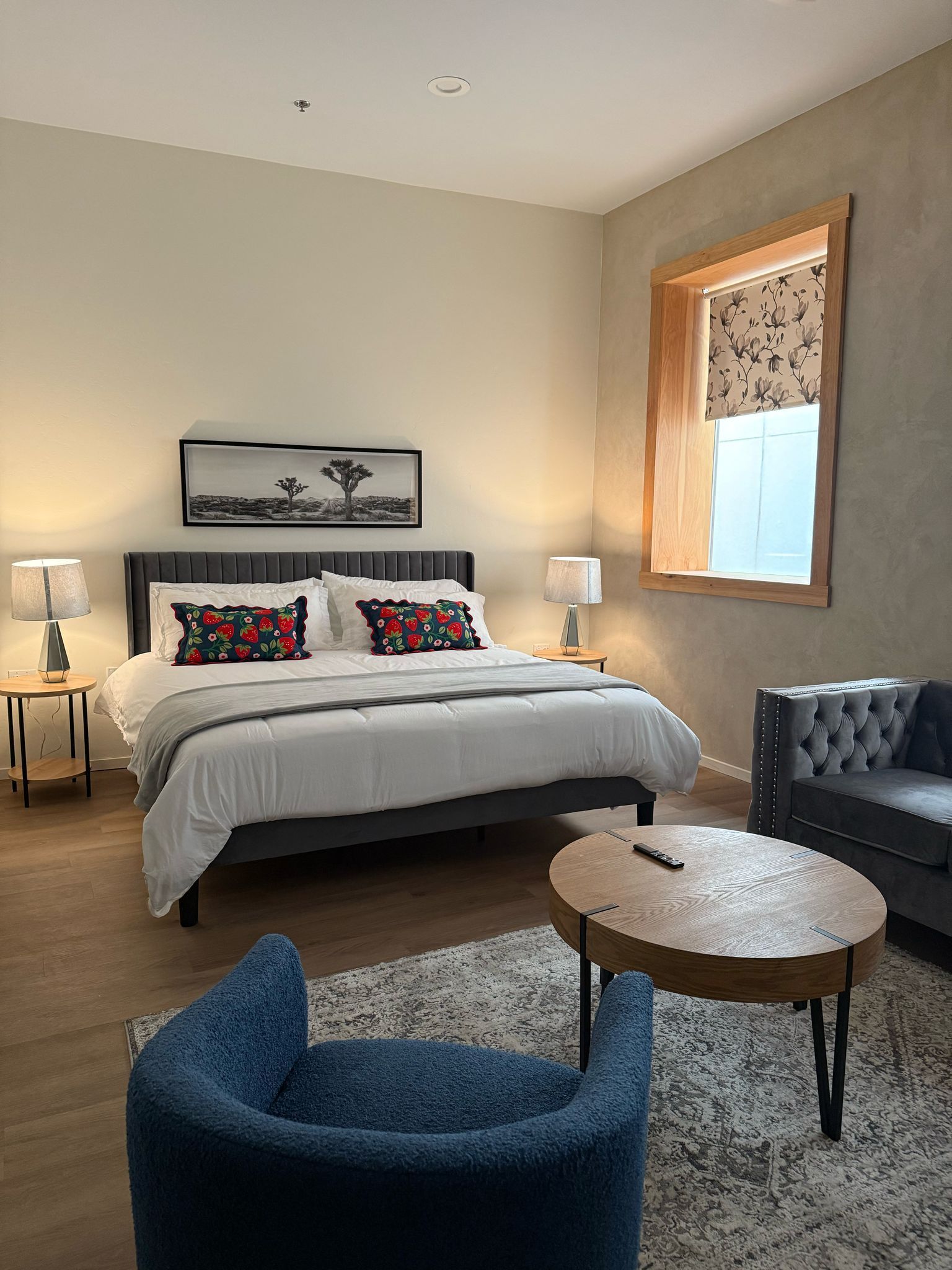 Accessibility is a priority, with street-level access and elevator service ensuring no stairs are necessary. Indulge in the spacious luxury and unique charm of our king suites, where comfort meets sophistication. Enhance your productivity in our luxurious boutique hotel, where every room is thoughtfully equipped with a spacious desk and complimentary high-speed Wi-Fi. Whether you prefer working in the privacy of your suite or in the vibrant atmosphere of our lobby, bar, or common areas, you'll find the perfect spot to get work done seamlessly.