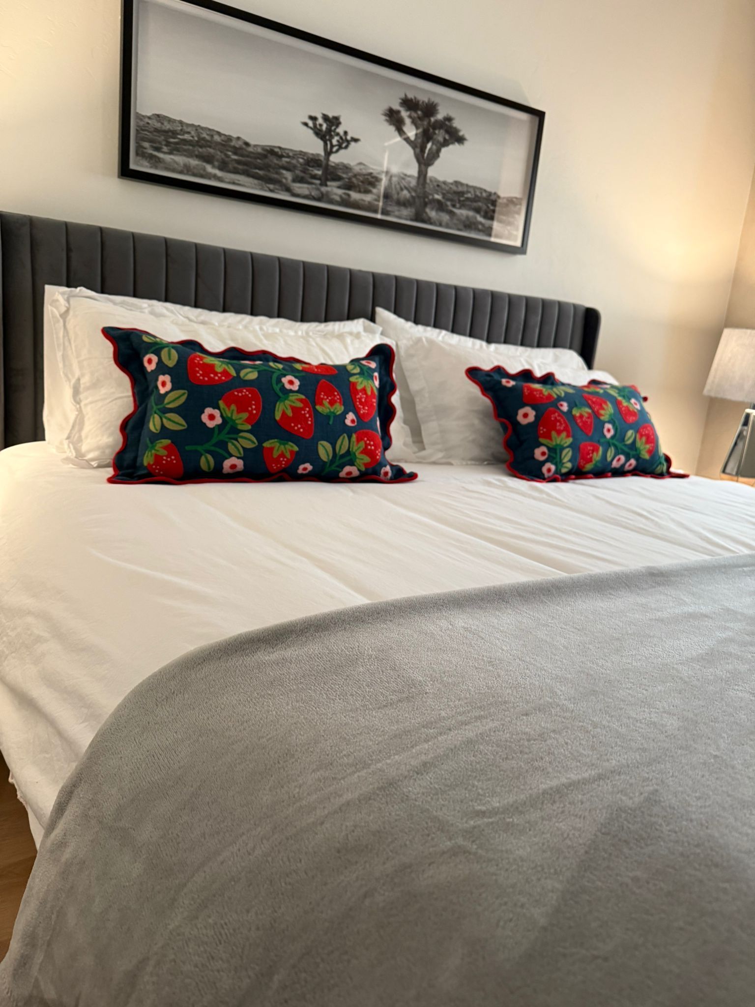 *Stay more than 1 night to receive discounted rates* Experience unparalleled luxury in our lower floor king suites, featuring soaring 14ft ceilings and opulent king-sized beds. Each suite is equipped with a state-of-the-art 65" television and a full bathroom. Every room is a masterpiece, uniquely designed with vibrant splashes of color and subtle contemporary elegance. Perfect for accommodating up to three guests, our suites offer a separate single bed upon request, and a crib for children can also be provided.