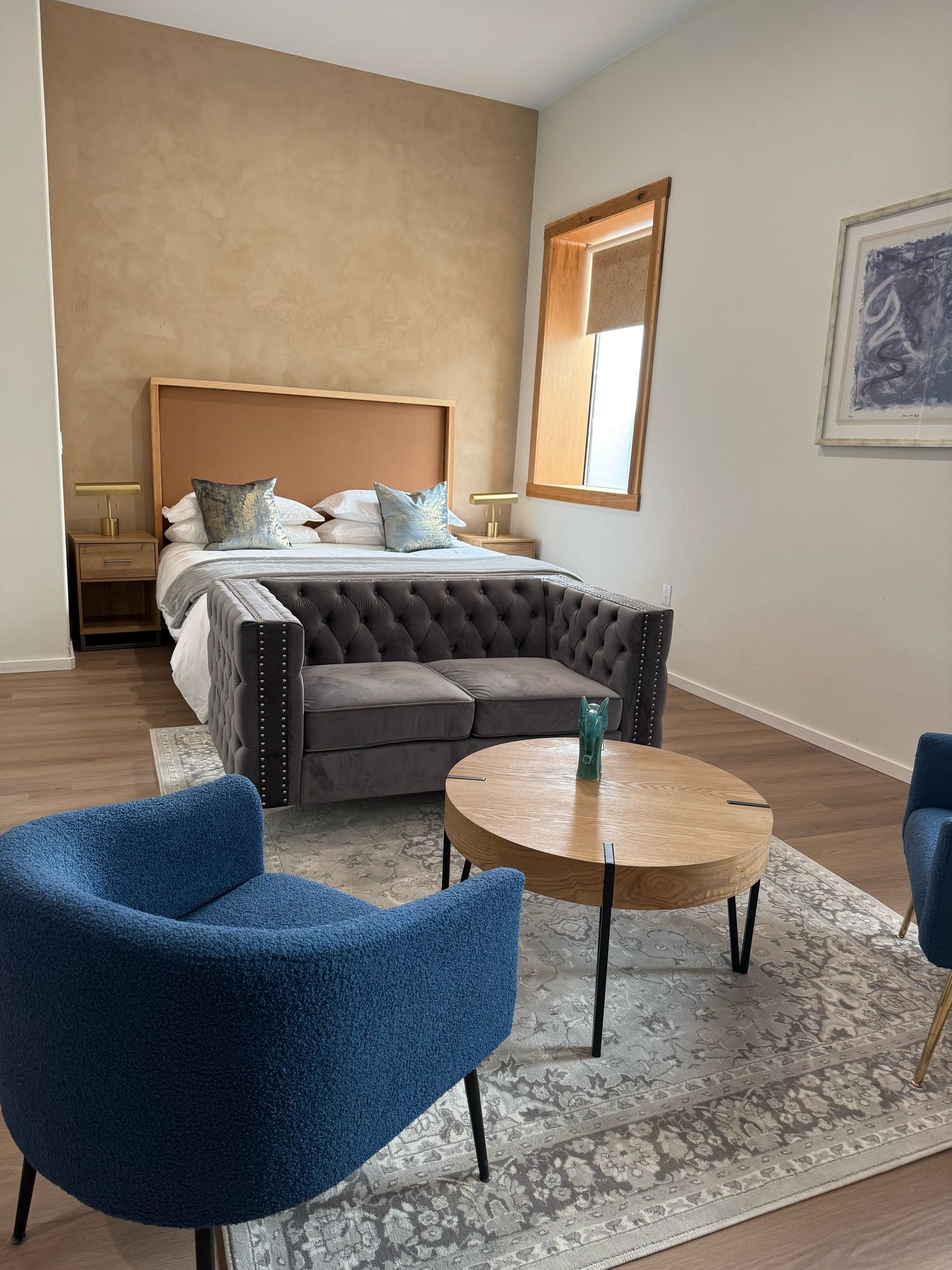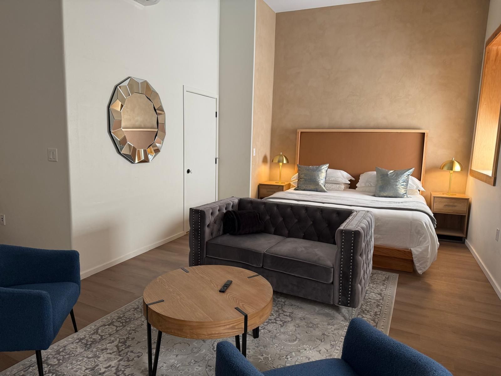 Accessibility is a priority, with street-level access and elevator service ensuring no stairs are necessary. Indulge in the spacious luxury and unique charm of our king suites, where comfort meets sophistication. Enhance your productivity in our luxurious boutique hotel, where every room is thoughtfully equipped with a spacious desk and complimentary high-speed Wi-Fi. Whether you prefer working in the privacy of your suite or in the vibrant atmosphere of our lobby, bar, or common areas, you'll find the perfect spot to get work done seamlessly.